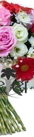 6 Pink Roses, 3 Red Roses, 3 Red Gerbera, 3 White Carnations, Chrysanthemums